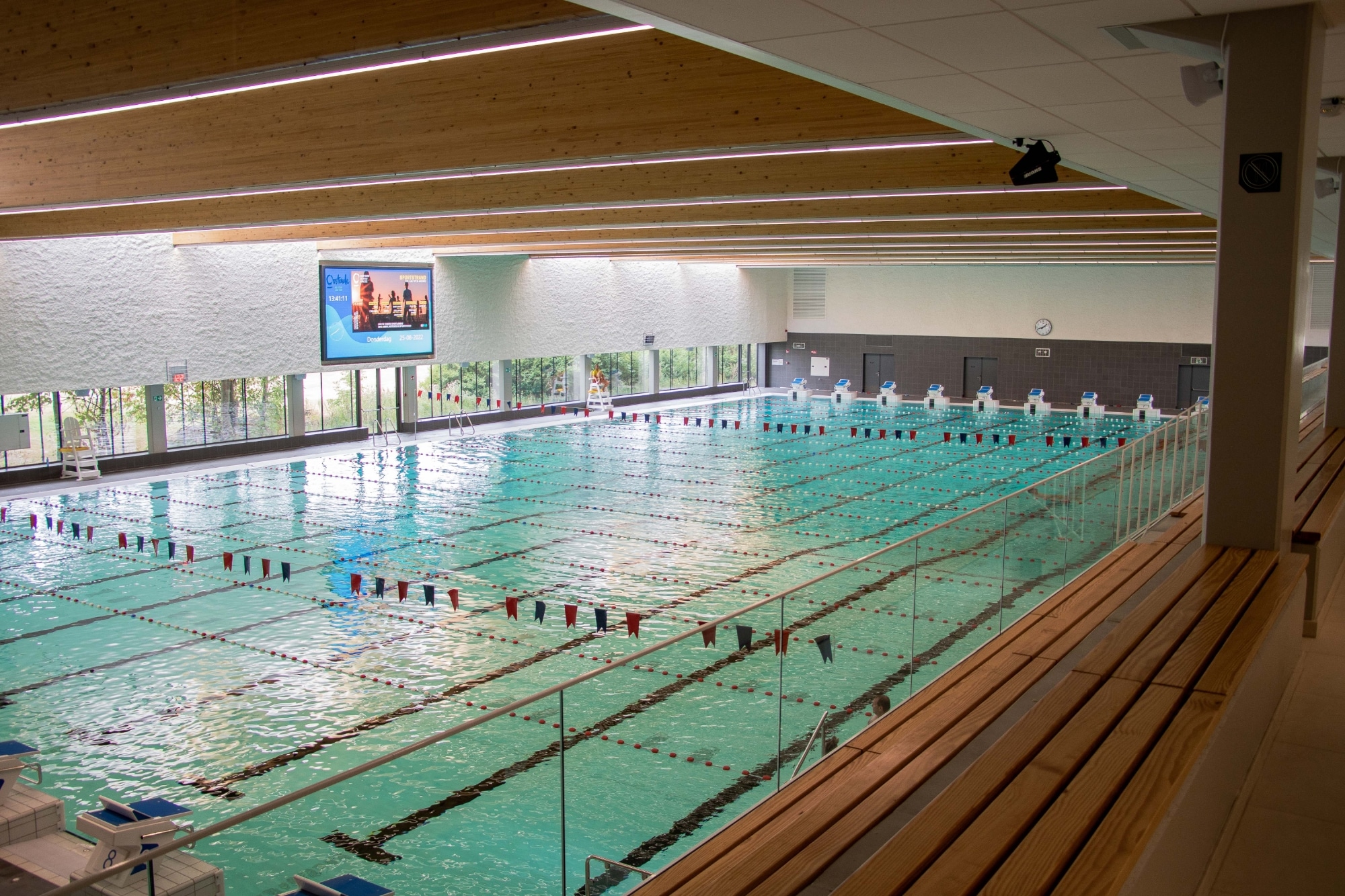 Mede dankzij een goede relatie met onze klant Engie kregen wij het vertrouwen voor het lichtmanagementsysteem van het zwembad. Een kloksturing zorgt ervoor dat de ‘gebruikers’ ontlast worden. Er zijn ook meerdere schermen geleverd (7 inch), (10,4 inch) en (15 inch) voor het eenvoudig beheren en bepalen van scenes voor elke gelegenheid.